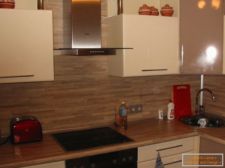 Mala soba prikladno je prekrivena podnim oblogama skromne veličine. Objesite male uzorke na zidu, dobit ćete izvornu ploču. Pomiješajte neutralne nijanse s motivima uzoraka.